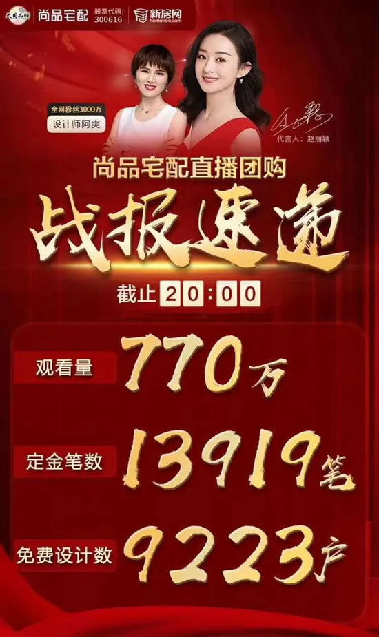 随着复工日期一延再延,尚品宅配集团没有坐以待毙,而是创新了新模式+大基建,全面启动线上服务,从总部到全国各地门店,实现“线上门店”开门红。2月22日,尚品宅配携手3000万粉丝的家居“顶流”大V “设计师阿爽”,在各大直播平台开启超级直播团购活动。5小时的直播狂欢,观看人数770万人次,成交订单数1.39万笔,捷报一出,便震惊全行业。