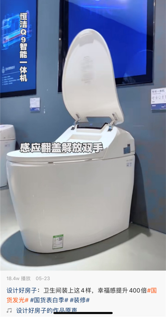其参赛视频里展示的恒洁Q9智能一体机,整体设计简洁大方;智能翻盖功能解放双手;一键旋钮便捷操作,一键实现妇洗、臂洗、烘干等功能,操作简单,老少皆宜;恒净除菌系统,权威机构 SIAA 认证抑菌效果,座圈抗菌率高达 99.99% 。恒洁以强大的产品品质及专业核心技术展示新国货品牌魅力。
