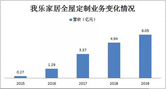 事实上,上市品牌凭借产能利用的进一步优化,已经在产效提升方面逐步取得主动权。数据显示,2017年-2019年,9家定制家居上市公司的平均营收增速分别为33.15%、17.94%、16.24%,远高于泛家居行业平均水平。其中最为亮眼的我乐家居,近三年的年均营收复合增长率高达20%,并连续五个季度净利增速业内第一。尤其是新产能释放之下的全屋定制品类,三年间销量翻了2.5倍至营收超6亿元,成为该公司业绩增长的强劲“加速器”。