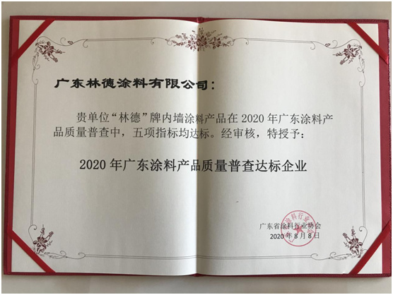 经过层层筛选,在此次普查中,林德漆荣获“2020年广东涂料产品质量普查达标企业”殊荣,得到了权威机构对林德漆产品品质和服务的认可。