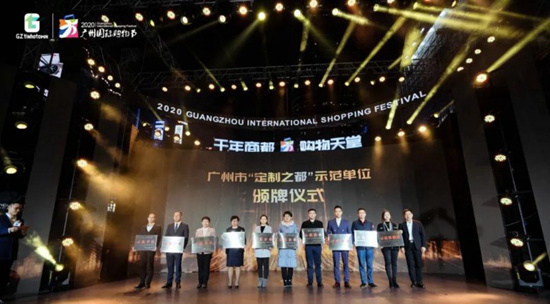 在2020广州国际购物节启动仪式上,正式颁发了广州市首批“定制之都”示范单位奖牌。