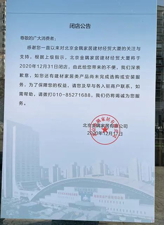 这座曾经的“京城高新家居建材第一家”,历经26个春秋后,于2020年12月31日,新年钟声敲响前,正式关闭,自此退出了北京家居卖场的舞台。