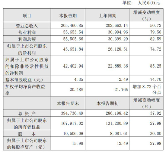 1月26日,江山欧派发布2020年年度业绩快报公告。公告显示报告期公司营业收入30.55亿元,同比增长50.72%;归属于上市公司股东的净利润4.57亿元,同比增长74.72%。