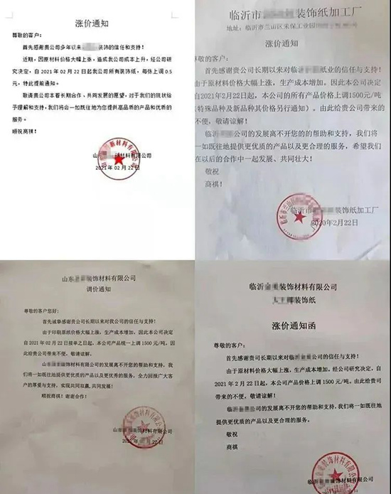 据记者了解,由于生产成本以及人工成本的增加,目前市场上多家装饰纸厂家对三聚氰胺纸均上调价格0.5元/张左右,而板材的价格也基本上调1-2元/张。有企业表示,现在基本是一天一个价,不接受口头预定,必须现款现货。