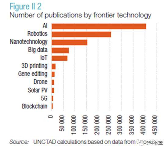 按前沿技术分类的出版物数量: