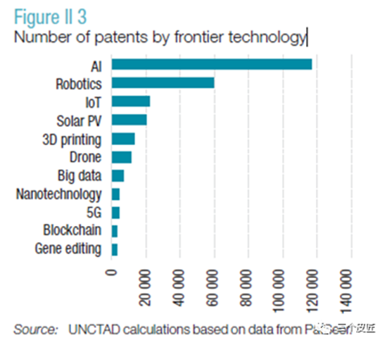 按前沿技术划分的专利数量: