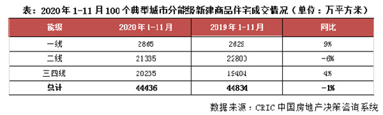 另一方面,家居行业又是一个明显依赖于地产周期的行业,从上游地产数据来看,2020年前11个月,三四线城市商品住宅总成交面积同比上涨4%,新房新增供应量,虽然同比有所回落,但三四线城市总体的新增供应量非常可观。新房成交量正吸引着大量家居企业下沉报到。