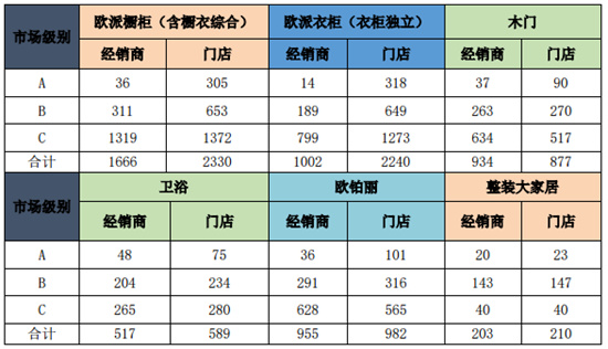 看一组数据,截至2019年,欧派橱柜(含厨衣)C级市场经销商数量为1272家,占全国范围总数量的78.6%,欧派衣柜(衣柜独立)C级市场经销商数量为772家,占全国衣柜独立经销商总数的79.3%。