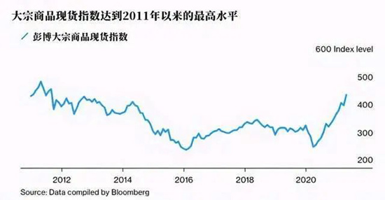 价格上涨的不仅仅是木材:彭博大宗商品现货指数目前处于2011年以来的最高水平。