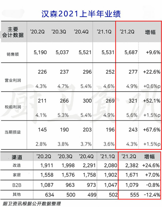 2021年第二季度,销售额和营业利润分别比上年增长9.6%和22.6%。改造部门销售额同比增长24.6%。