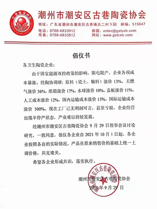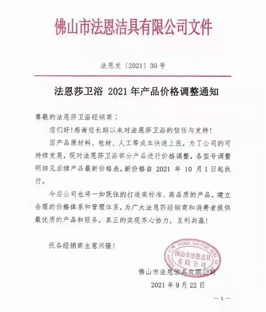 经历了材料涨价后,又来一波限电限产,令卫浴企业们心情复杂、五味杂陈。10月1日起,箭牌、东鹏、法恩莎以及多家卫浴企业开始上调产品价格。