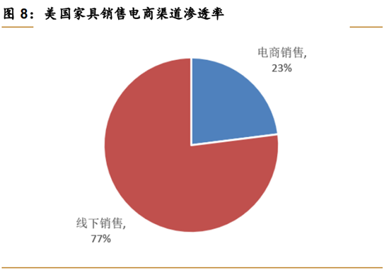 新渠道销售增长迅速,流量入口分散化。1)综合性卖场及电商平台切入建材家居渠道, 传统卖场消费者被分流。随着 amazon 等综合电商平台逐渐拓展家居类产品,及 wayfair 等 家居电商成立后,消费者线上购买家居品类的比例逐年提升。根据 Statista 数据,2021 年 预计美国线上的家具建材销售额约为 1327 亿美元,按前文所述 5720 亿美元市场规模计算, 渗透率约为 23%。