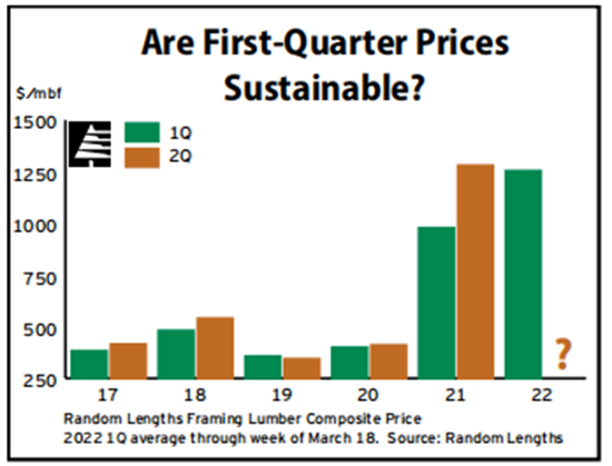 此外,不断飙升的通货膨胀、不断上涨的天然气价格以及生活成本的普遍上涨将收紧家庭预算。许多交易员担心,可自由支配收入的减少和历史上较高的建筑材料价格可能会在未来几个月对维修和改造行业造成压力。4月初,许多交易员预计价格将从第一季度的水平向下修正。对下行风险的担忧可能会抑制投机性购买,至少在出现更明确的价格趋势之前是如此。加拿大西部旧的增长伐木延期已经收紧了原木,并导致该地区,尤其是雪松的减产。