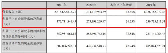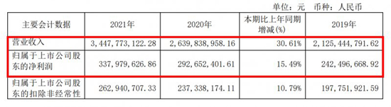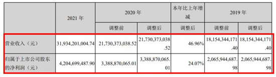 4月12日,东方雨虹披露2021年年度报告,公司实现营业收入319.34亿元,同比增长46.96%;归母净利润42.05亿元,同比增长24.07%。