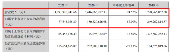 4月14日,东易日盛发布2021年年度报告显示,公司去年实现营业收入42.92亿元,同比增长24.52%;归属于上市公司股东的净利润约7754.31万元,同比下降57%。东易日盛称,净利润同比下降主要因上年处置房产获益8437.09万元。