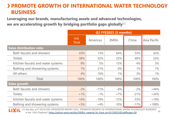 骊住方面,虽然水科技业务在美国、欧中非市场销售额均出现下滑,但幅度仅为3%,不及市场11%的下滑幅度,而在亚太地区甚至取得25%的较好增长。