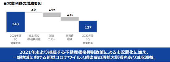此外,也有企业指出国内楼市低迷对企业经营带来影响。例如TOTO就直言大陆房地产价格调控政策导致市况恶化,加之部分地区疫情再次扩大,导致收入和利润下滑。