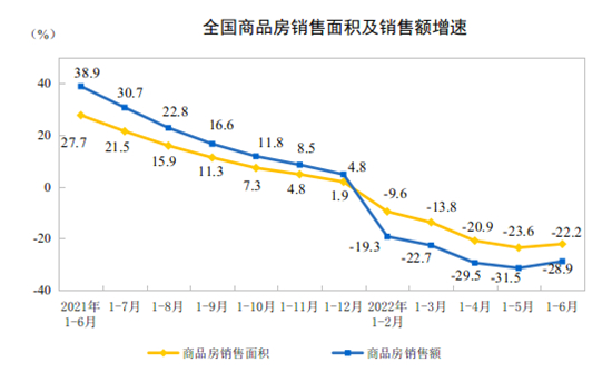 TOTO的说法不无道理。据国家统计局数据,1-6月,全国商品房销售面积68923万平方米,同比下降22.2%;其中,住宅销售面积下降26.6%。商品房销售额66072亿元,下降28.9%;其中,住宅销售额下降31.8%。上半年房地产开发景气指数也持续下降,6月份该指数为95.40,再创年内新低。