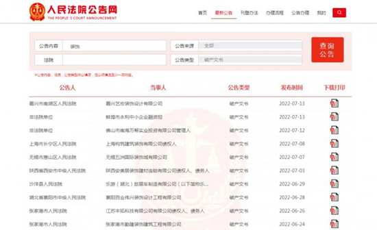 2022上半年40家装饰企业宣告破产,欠款超27亿