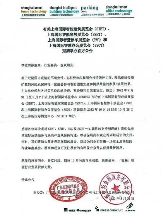 受疫情影响,2022年上海国际智能建筑展览会延期举行