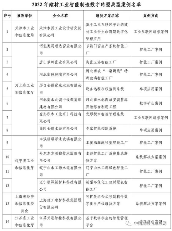 重磅!2022年60个建材工业智能制造数字转型典型案例发布