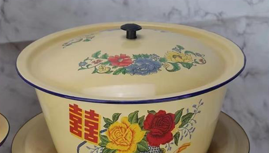 但半自动洗衣机还是有优点的,首先价格便宜,而且自定义洗涤、脱水时间也很好用,适应性更强,全自动的洗涤模式比较固定。老式搪瓷器皿每个人家里应该都有过一个搪瓷碗,都用它装过猪油吧,也是童年记忆之一了,大红花的设计看上去就很有年代感。