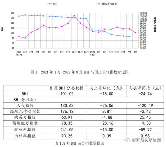 这两天,商务部流通业发展司及建筑材料流通协会,发布了8月建材家居终端卖场的景气度指数(BHI)。数据显示,在今年8月,全国建材家居景气指数BHI为101.02,环比下跌15点,同比下跌24.74点;全国规模以上建材家居卖场销售额为862.95亿元,环比下跌22.82%,同比下跌10.65%。对于BHI的下跌,建材流通协会行业研究部,也给出了相关的数据解读。