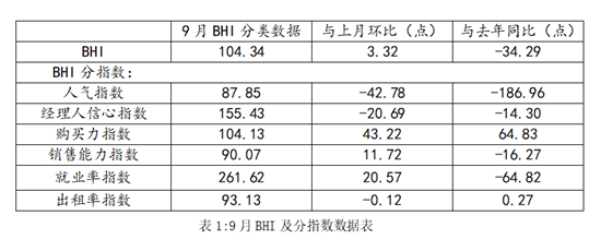 全国建材家居景气指数BHI9月份为104.34,环比上涨3.32点,同比下跌34.29点。全国规模以上建材家居卖场9月销售额为992.13亿元,环比上涨14.97%,同比下跌15.30%;2022年1-9月累计销售额为9458.74亿元,同比上涨20.35%。