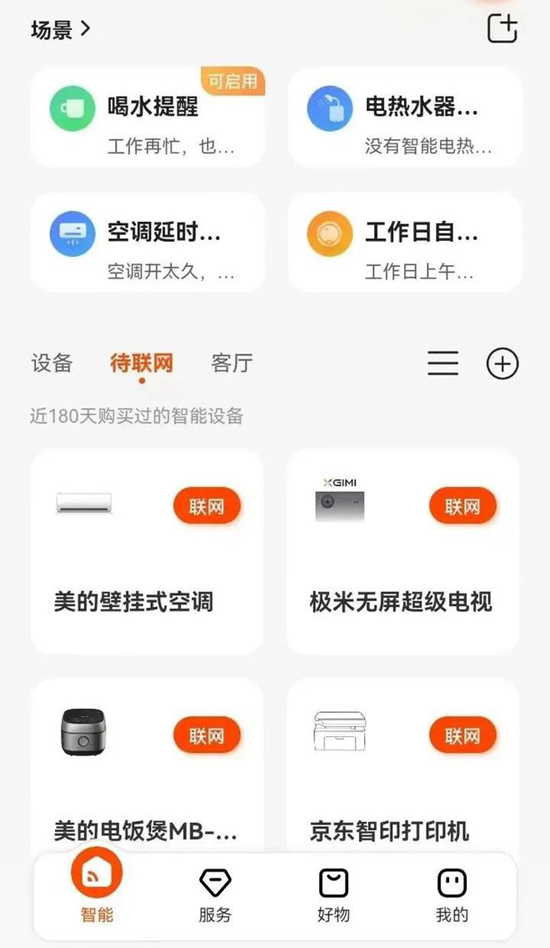 前两天双11,我买了一个体脂秤,就发现了一个新东东——京东小家 (上图就是界面)。 它把我买过的能联网的产品都联系在了一起,真的是万物互联啊 。