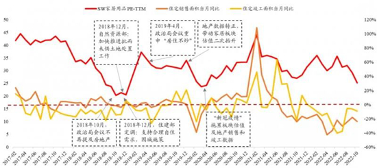 7-8月各地散发的疫情和局部出现房屋延期交付问题影响了居民的置业信心,促使保交楼政策的推进。但是政策效果的体现不及预期、基本面缺乏支撑、市场下修对家居企业的全年业绩预期,家居板块回落并在10月底创新低。