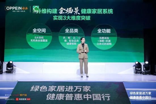如何突破喊概念阶段,真正为消费者提供健康、舒适、优质的家居产品和服务,成为众家居企业探索的大命题。欧派作为定制家居行业的头部品牌,也在此时率先站出来,牵头引导行业共同探索“绿色家居”的新发展方向。 在近日欧派举办的一场发布会上,欧派家居重磅提出“健康+3.0”战略,同时正式启动健康普惠行公益行动。与此前普及E0级、倡导无醛添加+净醛板材的健康+1.0,以及整柜净醛的健康+2.0不同,这次空间净醛的健康+3.0,已不仅限于技术升级和产品升级,而是聚焦用户消费者整家环保需求的一次解决方案升级,实现全空间、全品类、全功能的健康家居定制,也为行业带来了更新、更高的绿色家居标准。