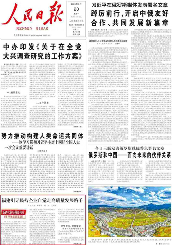 今日,《人民日报》头版刊发题为《福建引导民营企业自觉走高质量发展路子》的要闻,聚焦报道安踏、九牧、恒安等福建龙头民营企业坚持传承弘扬“晋江经验”,坚定不移推动高质量发展,成就新时代新征程新伟业。以下为报道原文(部分内容有删减)——