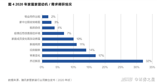 从消费者装修动机来看,它们分别是:审美变化(17%)、旧房翻新(14%)、家庭成员变动需改动房屋(10%)、疫情后想要改善居住环境(7%)以及出现收纳难题(3%)等存量房的改善型装修需求逐步释放出来,合计占到了51%,这是行业新的增长机会。