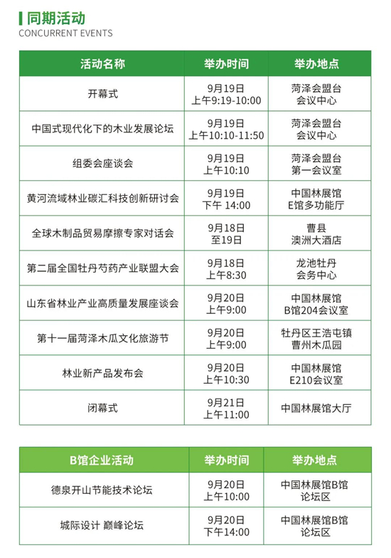 本届林交会安排了开幕式、组委会座谈会、林业产业高质量发展座谈会、林业新产品发布会、闭幕式等活动,同时创新举办中国式现代化下的木业发展论坛、全球木制品贸易摩擦专家对话会、黄河流域林业碳汇科技创新研讨会等10项活动,着力为企业搭平台、拓市场、寻商机,为林业产业找定位、明方向、促发展。
