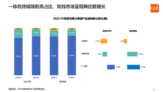 GfK中怡康测算数据显示,2023年智能马桶市场零售额整体仍将呈现个位数增长。电商全平台零售量额将达380万台、82.0亿元,建材渠道零售量额将达223万台、106.3亿元,市场仍存在机会。