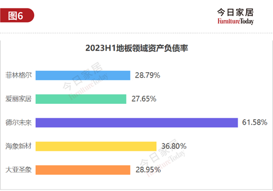 资产负债率在30%以下的有13家企业,建材/其他6家,地板3家,成品/软体2家,卖场1家、卫浴1家。