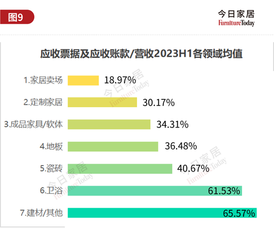 定位于中高端的德系品牌菲林格尔 ,应收款占营收比仅为9.88%,远低于地板板块均值36.48%。企业营收多年徘徊在7亿左右,难以突破,随着房地产低迷,今年中报收入仅为1.8亿,同比-6.12%。