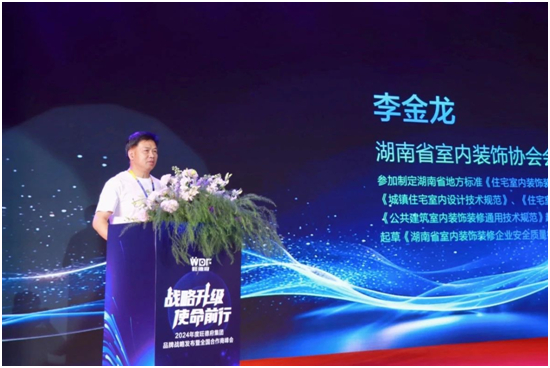 成绩凝聚汗水,荣誉积蓄力量。李会长为旺德府集团、万象板材准备了一份至高无上的荣耀,在热烈的掌声中,旺德府集团董事长周晓辉登台,李会长为旺德府集团授予“万象板材——湖南板材领导者”荣誉牌匾。荣誉是对品牌的认可,更是对品牌的鞭策,旺德府集团将继续秉持“为社会创享健康美好居办环境”的愿景,不断提供优质、健康、美观的产品。
