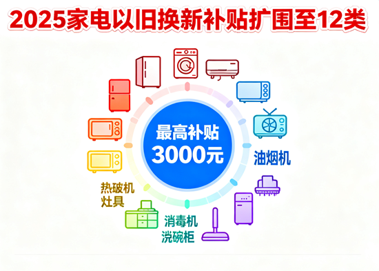 2025家电以旧换新补贴扩围至12类,绿色智能产品单件最高补贴20%