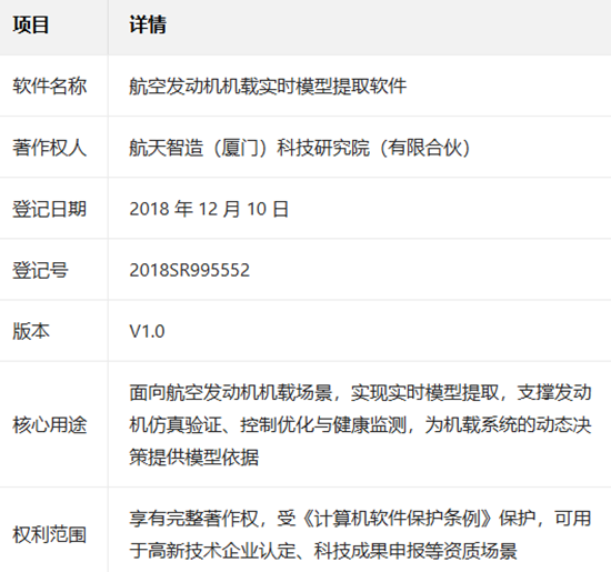 航天智造(厦门)科技研究院斩获航天级发动机机载实时软件软著