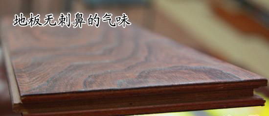 靠近地板嗅闻,没有刺鼻的气味,反而有一种天然木材的清香。店员介绍,安信的实木复合地板用胶十分讲究,只有薄薄一层,基本不含甲醛。