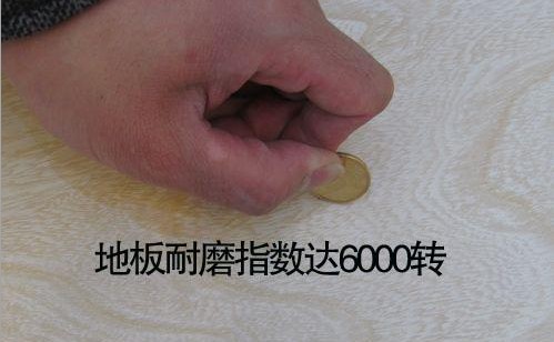 接着中国口碑网记者又来测评这款地板的耐磨性,记者拿出了一枚银币,用尽全力在木地板上不停的摩擦,在经过一段很长时间的刮磨后,地板尽没有一点刮痕,可见木地板质量极好。听工作人员说,这种木地板上涂了一层陶瓷耐磨漆,这种漆是著名涂料品牌,油漆附着力强,优于其他普通油漆,而且漆面涂饰7遍底漆2遍面漆,漆面饱满厚实,使得这款地板不仅外观优美,更重要的是产品耐磨性远远高于普通地板,同时终身免打蜡。