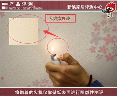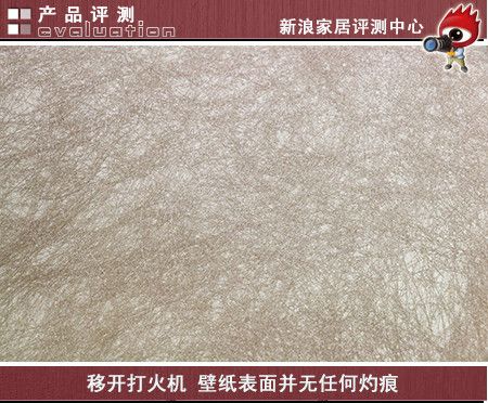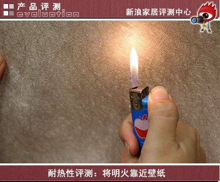 用打火机接近壁纸表面,壁纸遇高温没有燃烧迹象。说明此款壁纸具有较好的耐热性能。