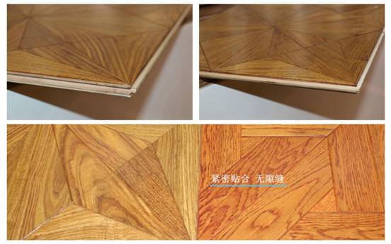地板表面经过了高精度的激光镂洗。可以看到,地板没有崩边、磨边,掉角等问题。