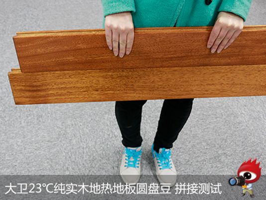 大卫23℃纯实木地热地板圆盘豆 拼接测试