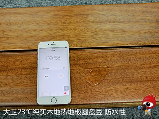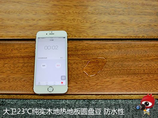 大卫23℃纯实木地热地板圆盘豆 防水性评测