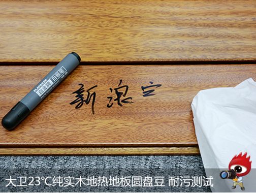 小编用白板笔在地板表面写字,待字迹全干后,用纸巾擦拭字迹,字迹很容易被擦掉,地板表面干净美观,所以该地板可以轻松承受白板笔的图画程度。