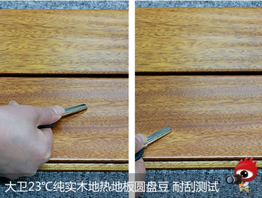 大卫23℃纯实木地热地板圆盘豆 耐刮测试