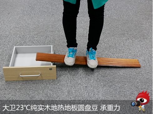 大卫23℃纯实木地热地板圆盘豆 承重能力测试