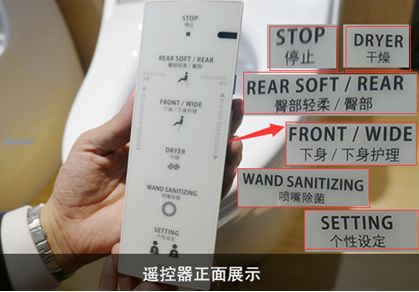 操作上除了在马桶侧面有操作面板外,还配有遥控器,对于这款马桶所具备的自动冲洗、自动开合、智能除臭、自动冲洗等功能,皆可通过遥控器实现,使用非常方便快捷。